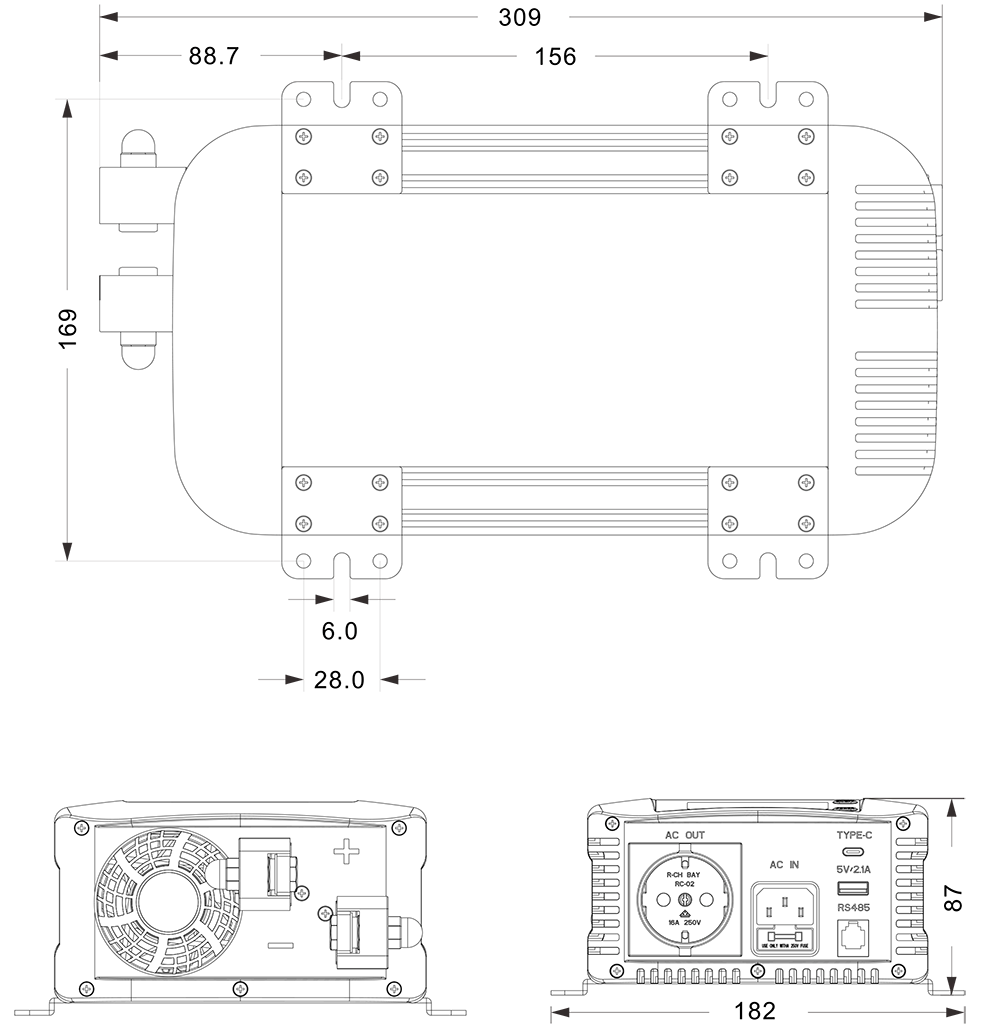 यांत्रिक रेखाचित्रे:(309x182x87 मिमी)