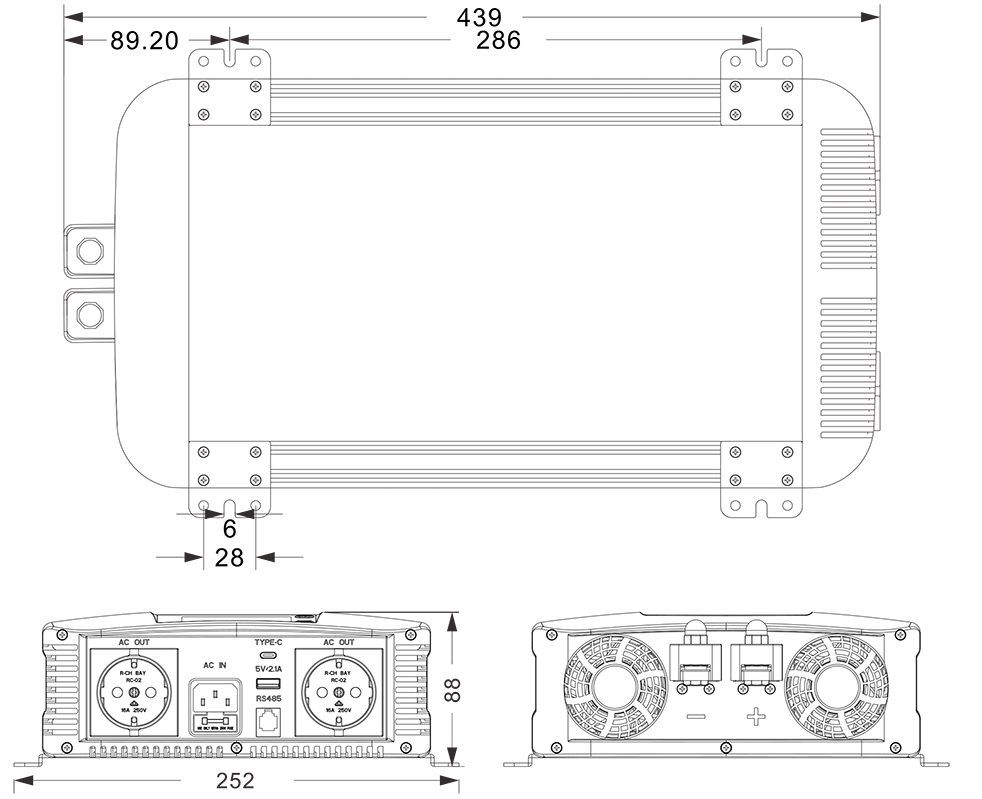 यांत्रिक रेखाचित्रे:(439x252*88mm)