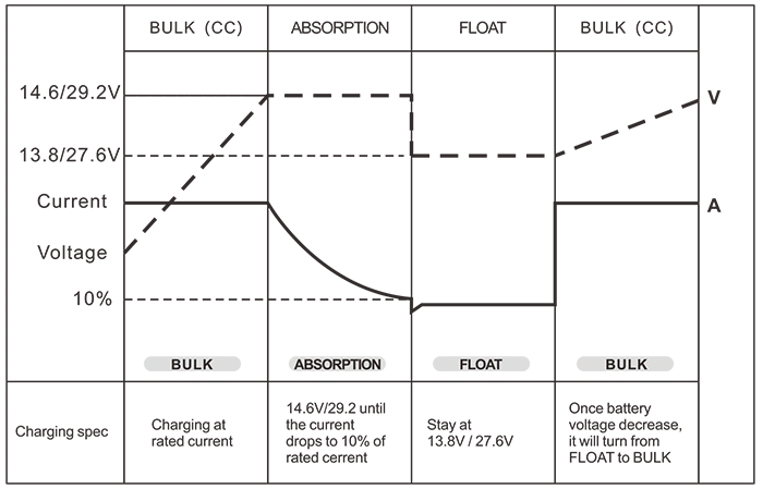 बॅटरी नियंत्रण (3-स्टेज बॅटरी चार्जर) मोठ्या प्रमाणात/शोषण/फ्लोट
