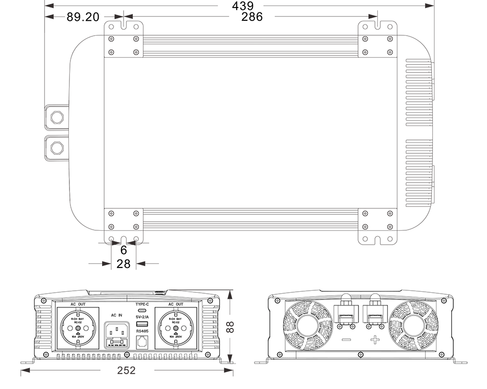 यांत्रिक रेखाचित्रे:(439x252x88mm)