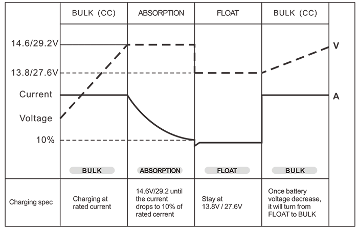 बॅटरी नियंत्रण (3-स्टेज बॅटरी चार्जर) मोठ्या प्रमाणात/शोषण/फ्लोट