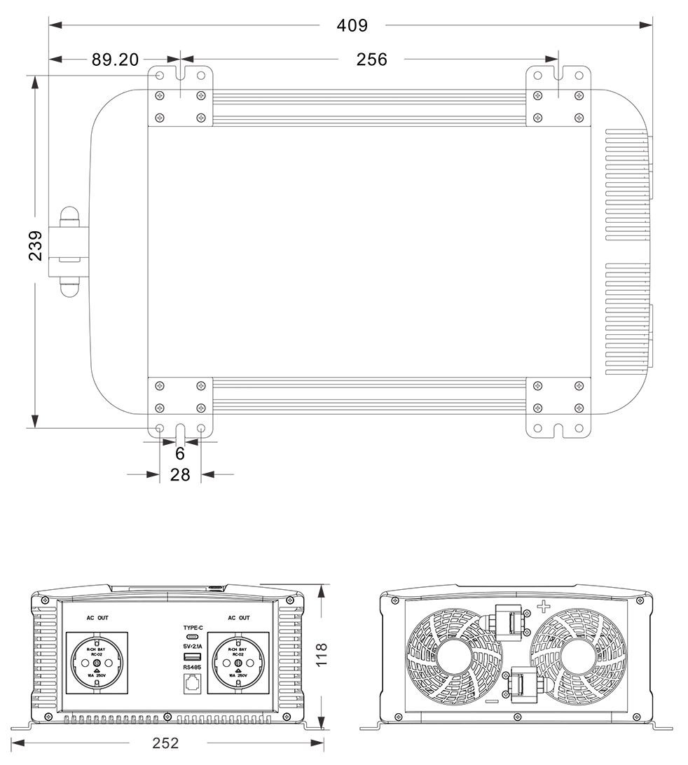 यांत्रिक रेखाचित्रे:(409x252x118mm)