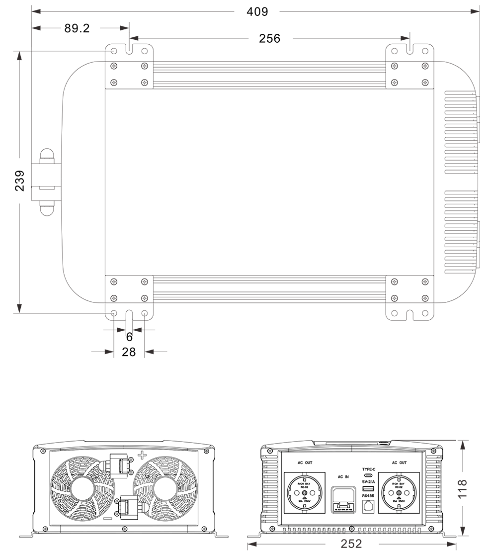 यांत्रिक रेखाचित्रे:(४०९x२५२x११८ मिमी)